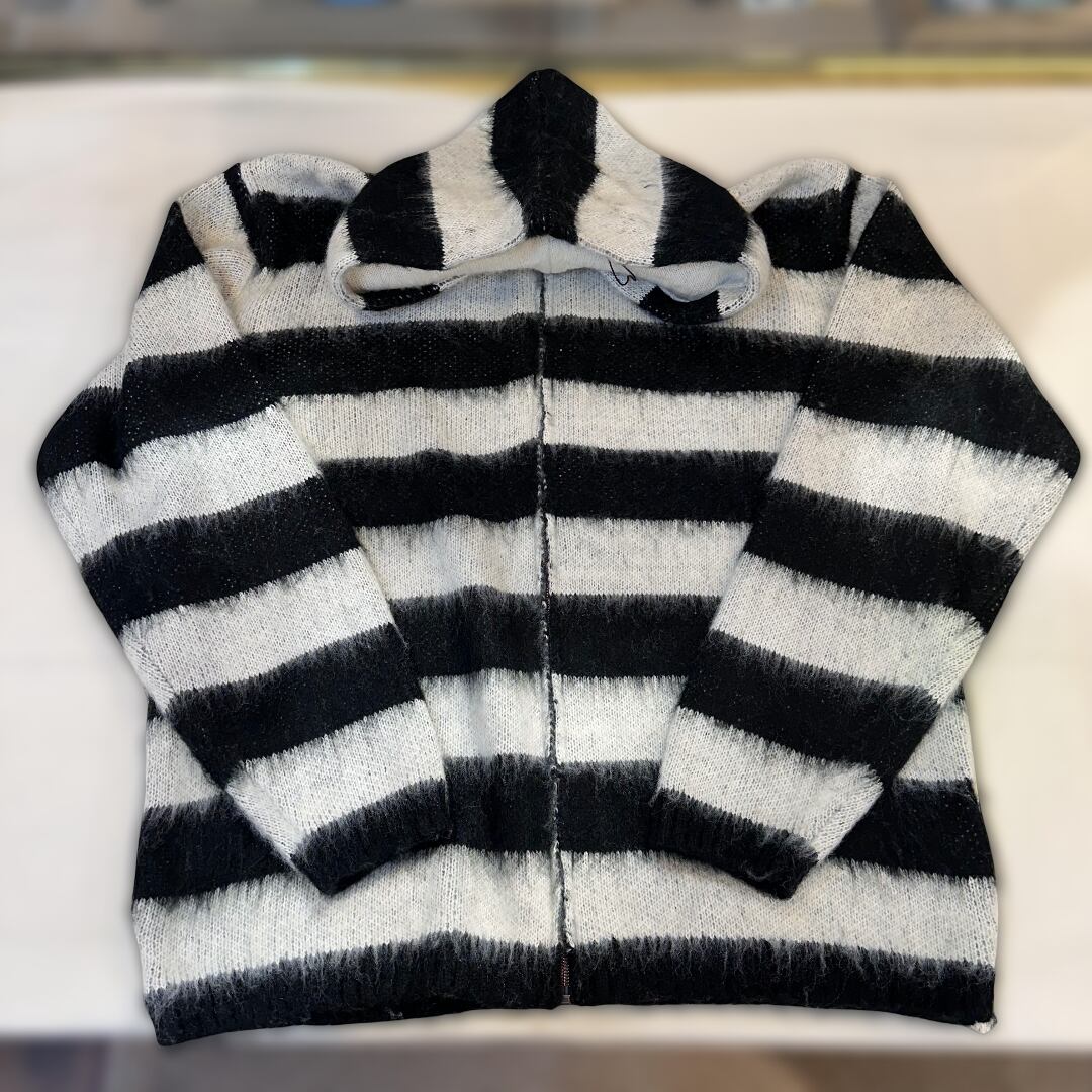 22335 MOHAIR TOUCH ZIP PARKA(BORDER) / モヘアタッチ起毛ジップパーカー/オフホワイト】