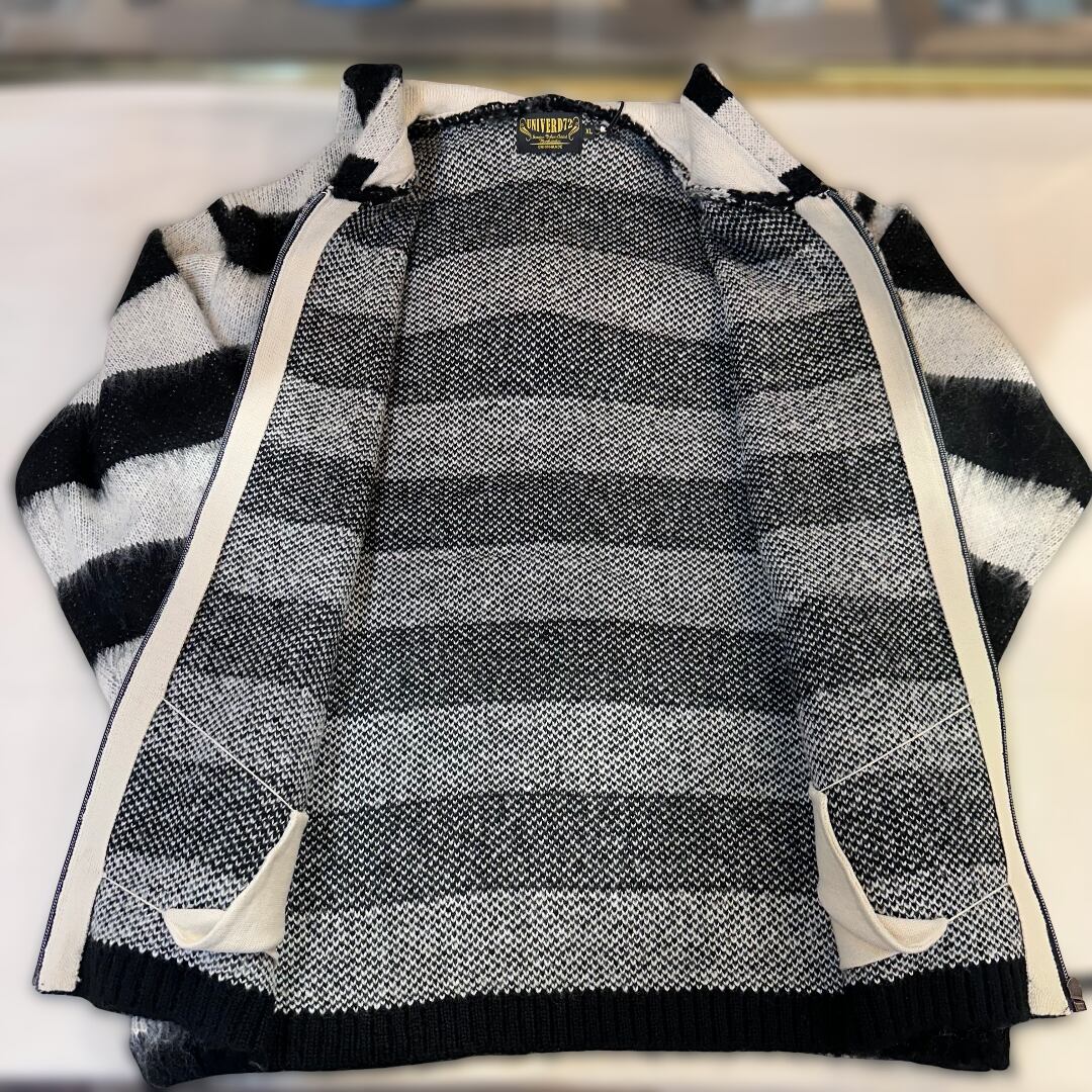 【UNIVERAD72/ユニバード 22335 MOHAIR TOUCH ZIP PARKA(BORDER) / モヘアタッチ起毛ジップパーカー/OFF WHITE】