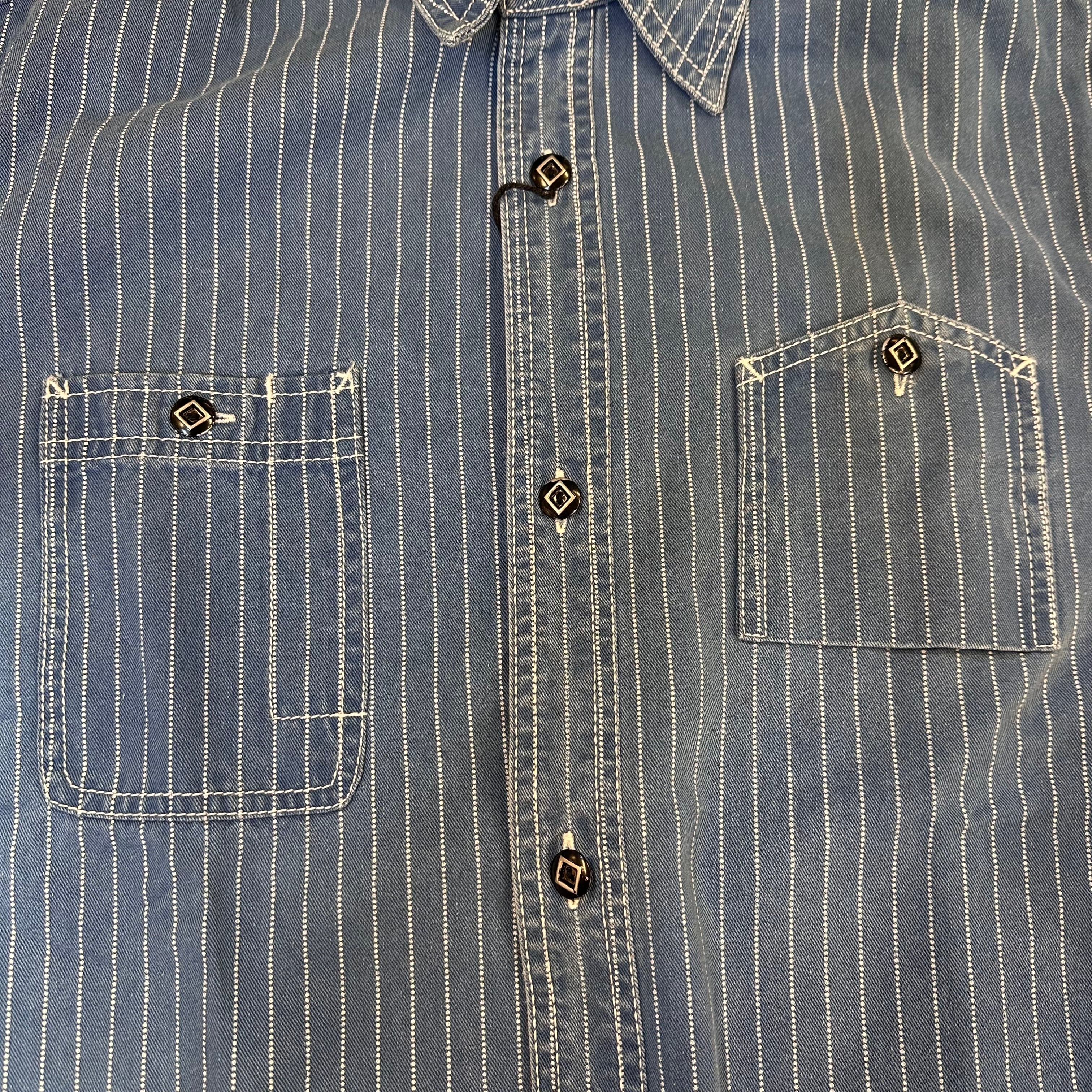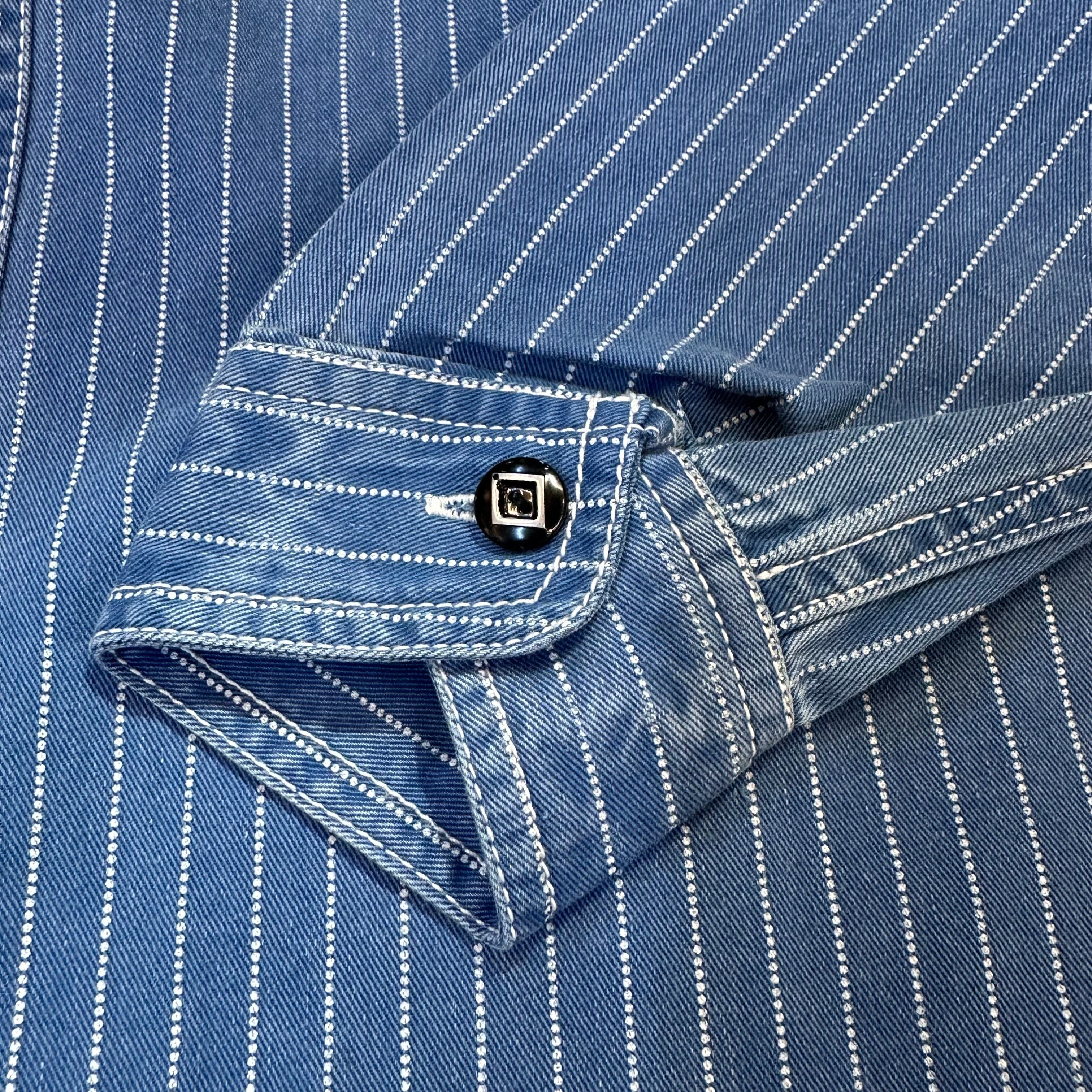 ◼︎オリジナルのインディゴウォバッシュ生地を使用したワークシャツ。全プロセスを海外製にすることにより、お手に取りやすい価格帯を実現。ガチャポケ+ストームカフスでヴィンテージライクをよりよいものに。製品ワンウォッシュ入りで加工違いの2カラー展開。