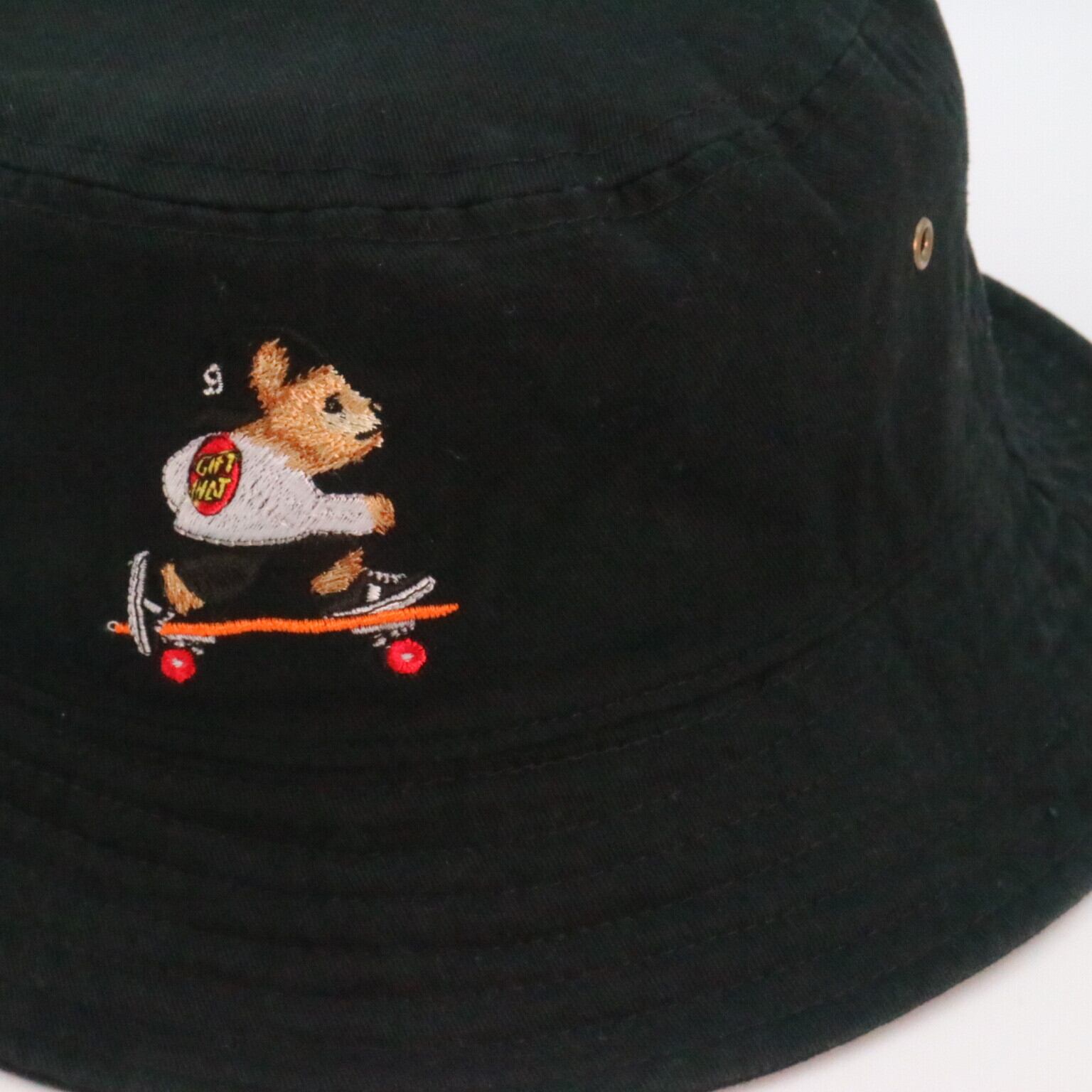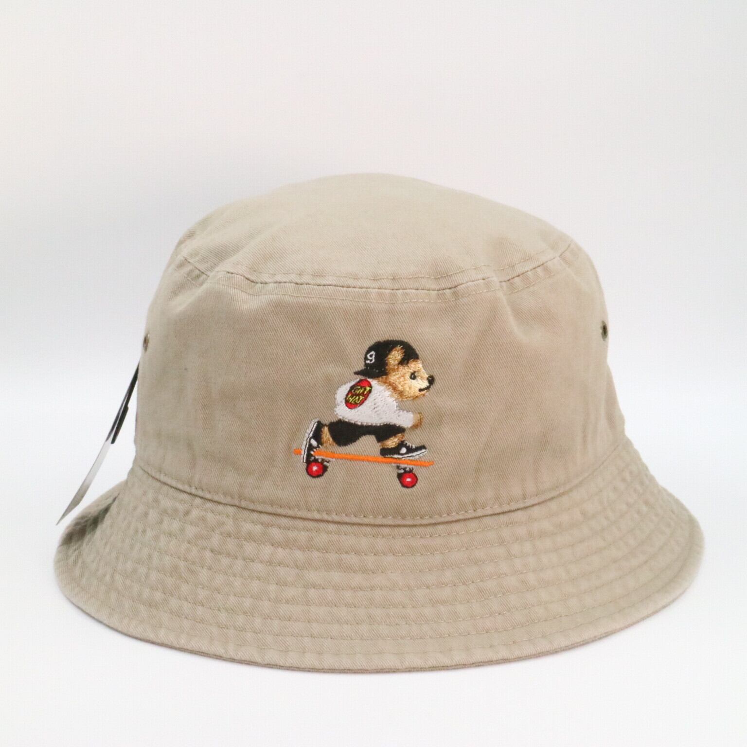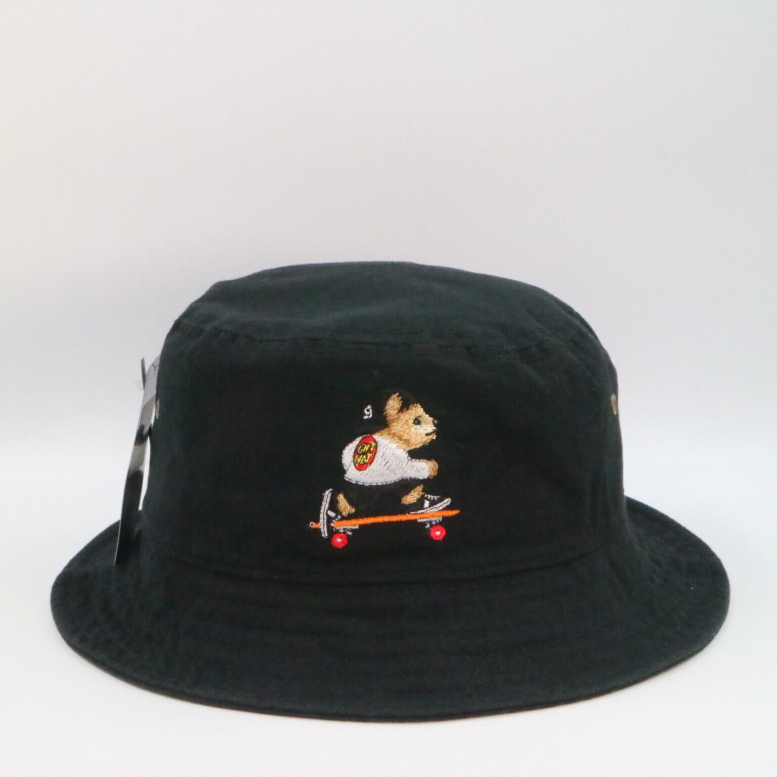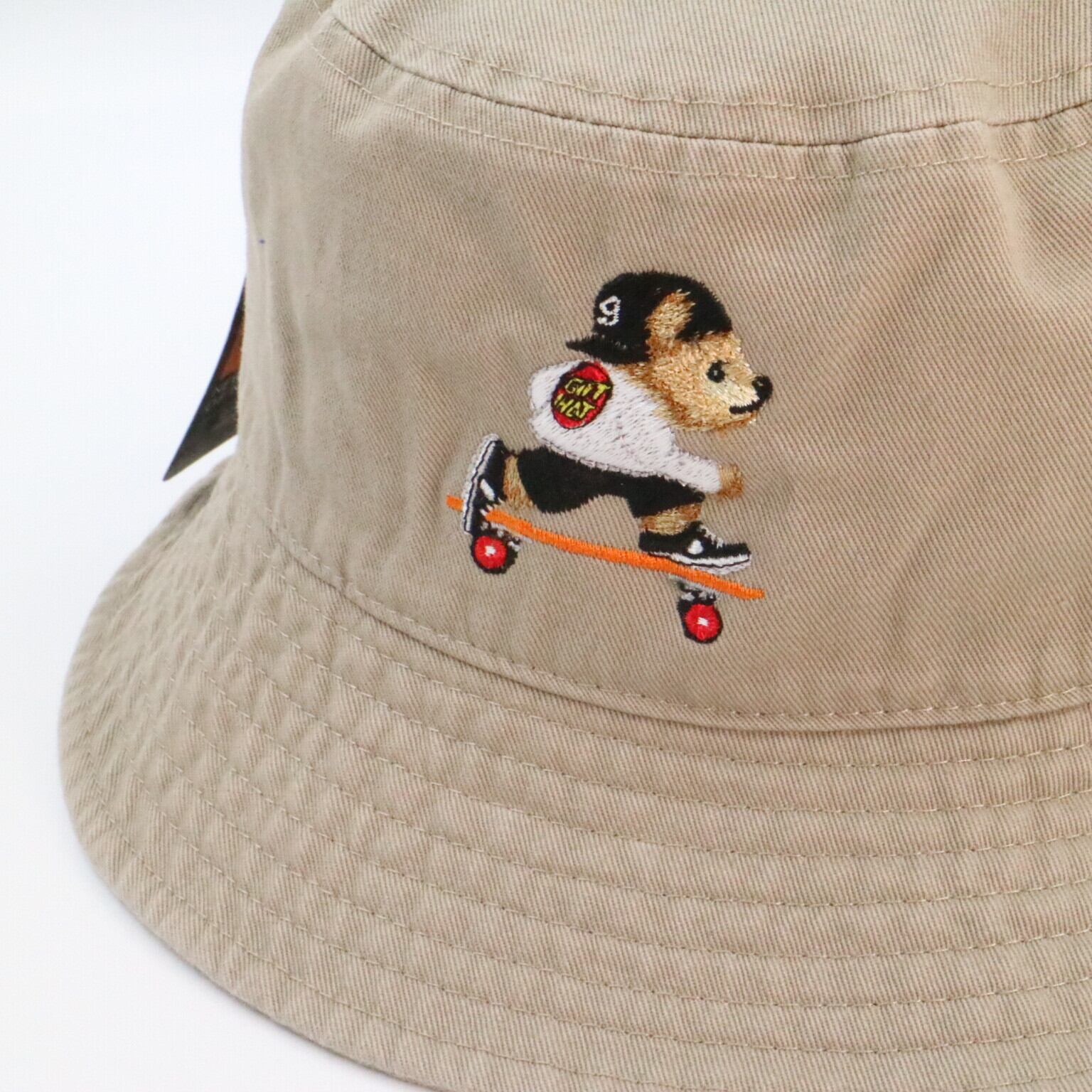 gifthat(ギフトハット)オリジナルのベアが刺繍されたバケットハットです。