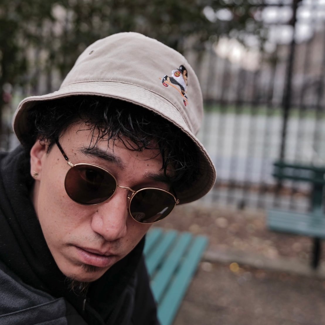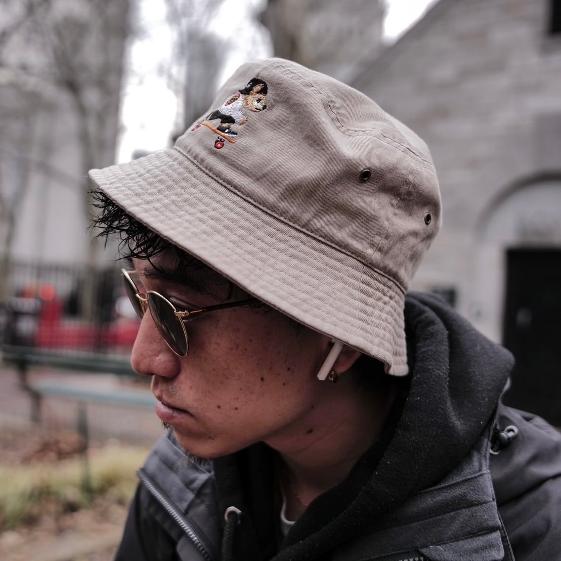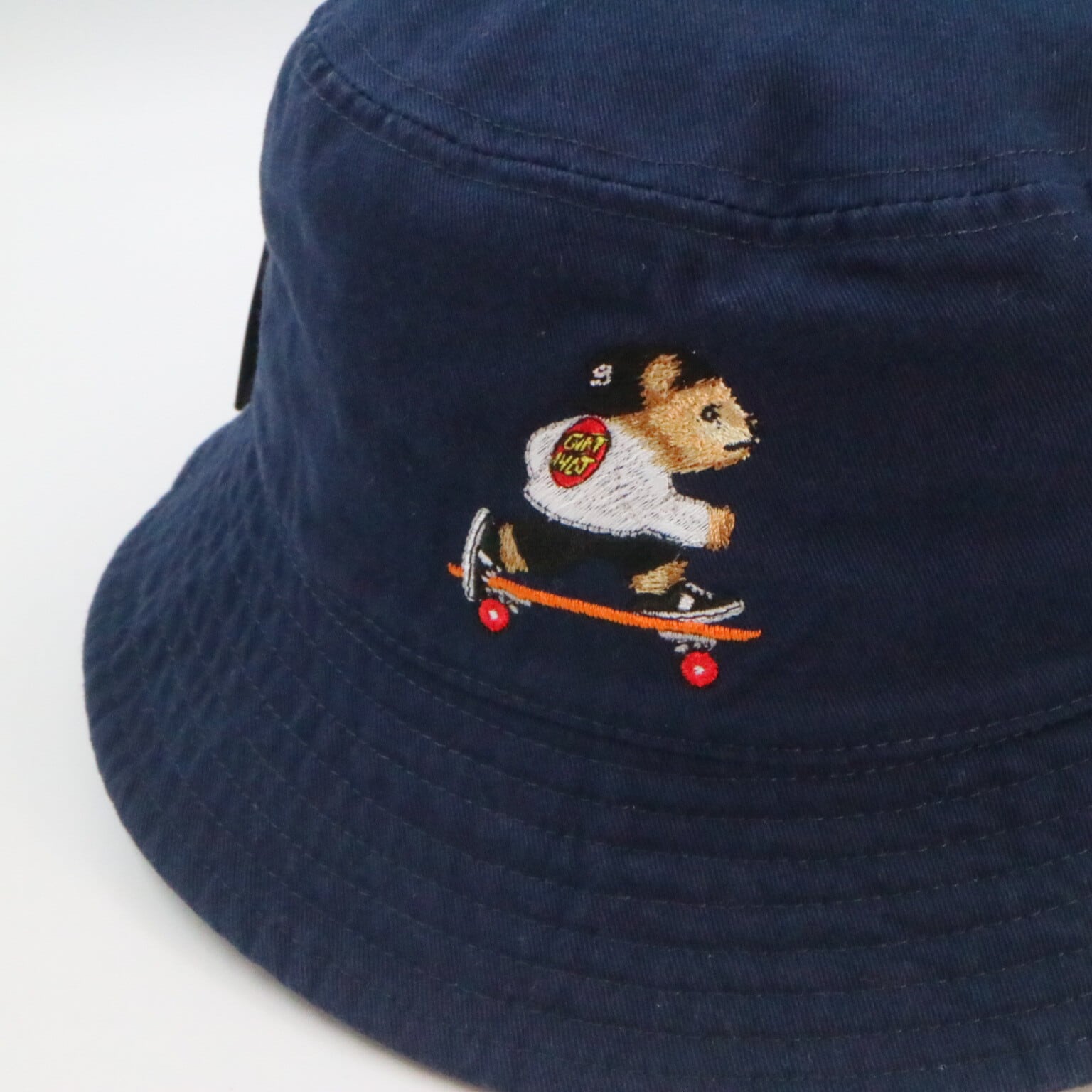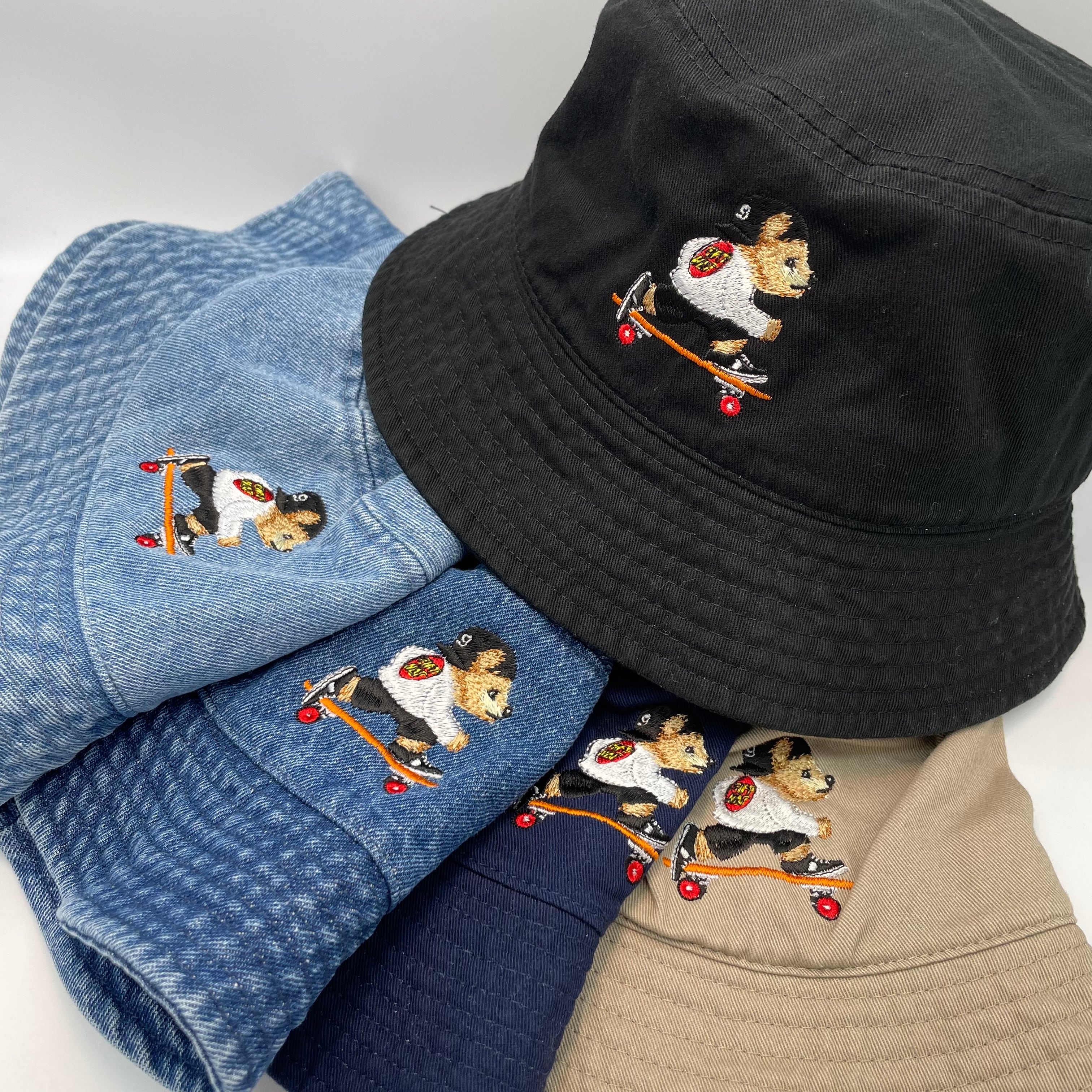 gifthat(ギフトハット)オリジナルのベアが刺繍されたバケットハットです。